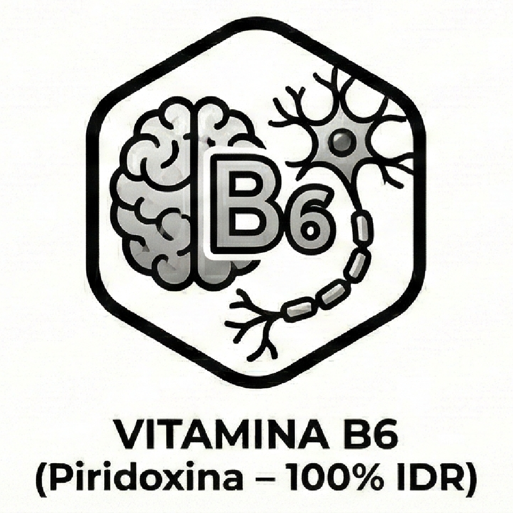 ● Vitaminas B1, B6 y B12 (100% IDR): participan en el metabolismo energético y apoyan el funcionamiento normal del sistema nervioso.